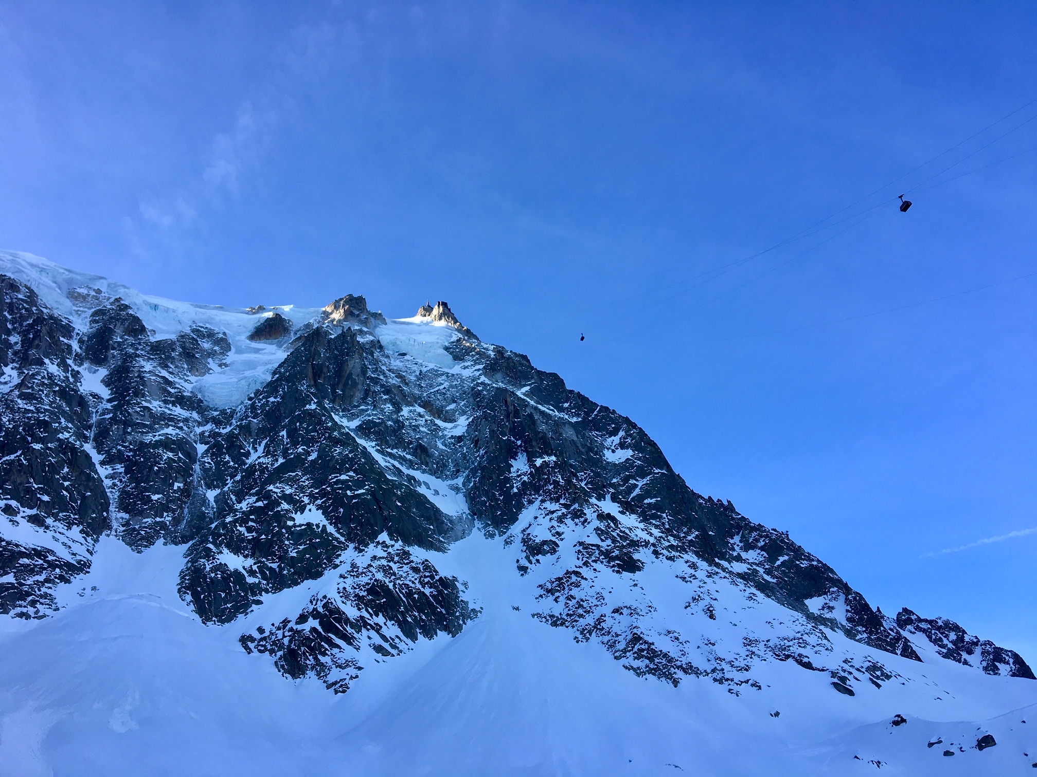 Vue sur l’Aiguille du Midi et son téléphérique